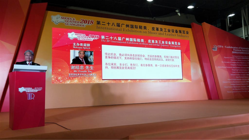 開幕式上,廣東鞋業廠商會會長劉穗龍、廣州鞋業商會會長 陳小敏、顯輝國際展覽有限公司董事長 謝昭忠等嘉賓致歡迎辭。