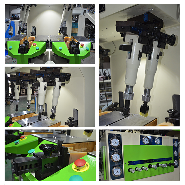2、側壓塊帶獨特轉角功能,可根據鞋型大小弧度自動旋轉吻合,從而達到壓力均衡分配,使鞋邊壓合完美貼合。