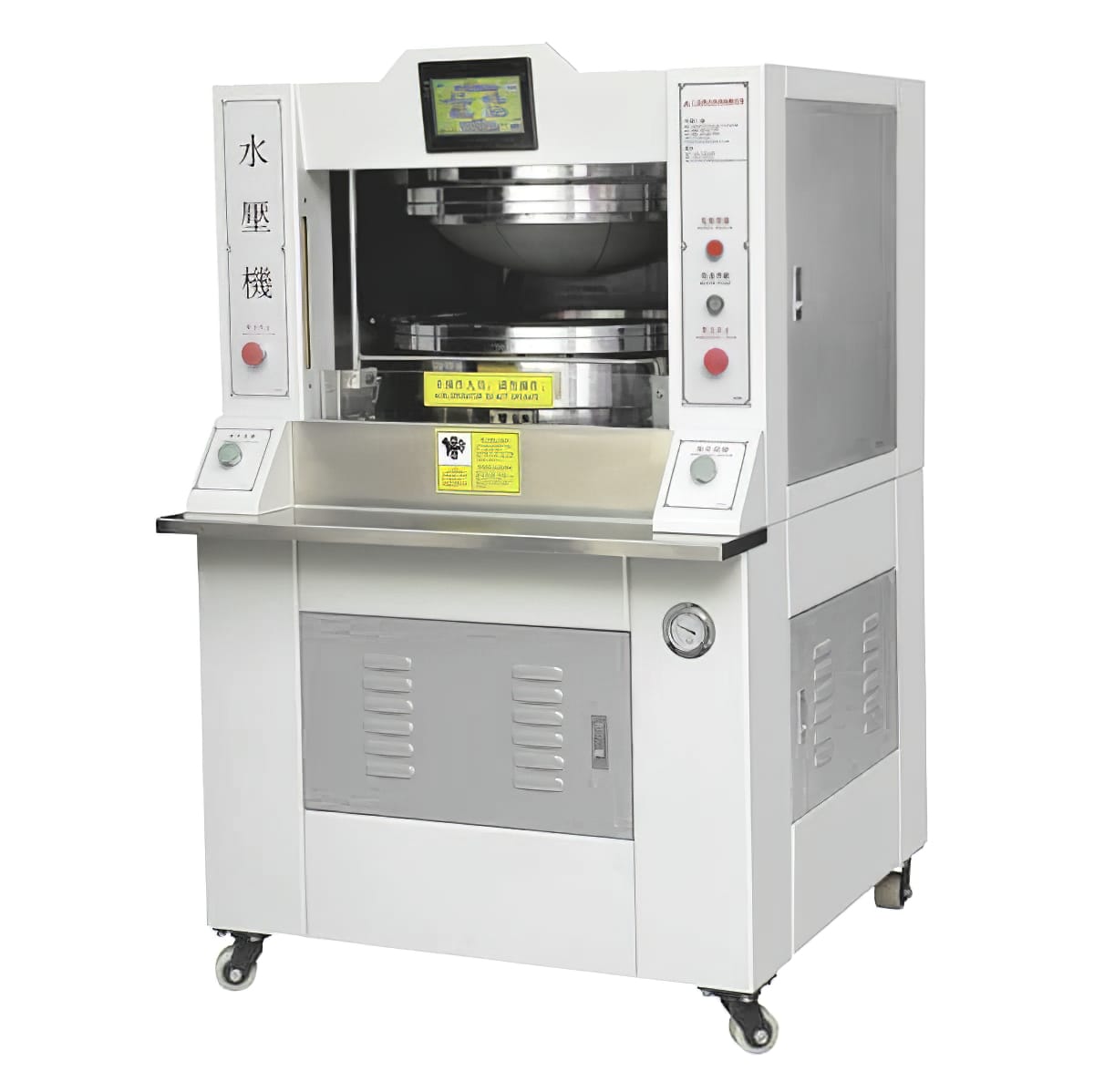 4、兩個急停按鈕及安全門觸碰裝置,紅外線光柵感應(yīng)裝置,三重安全保護。